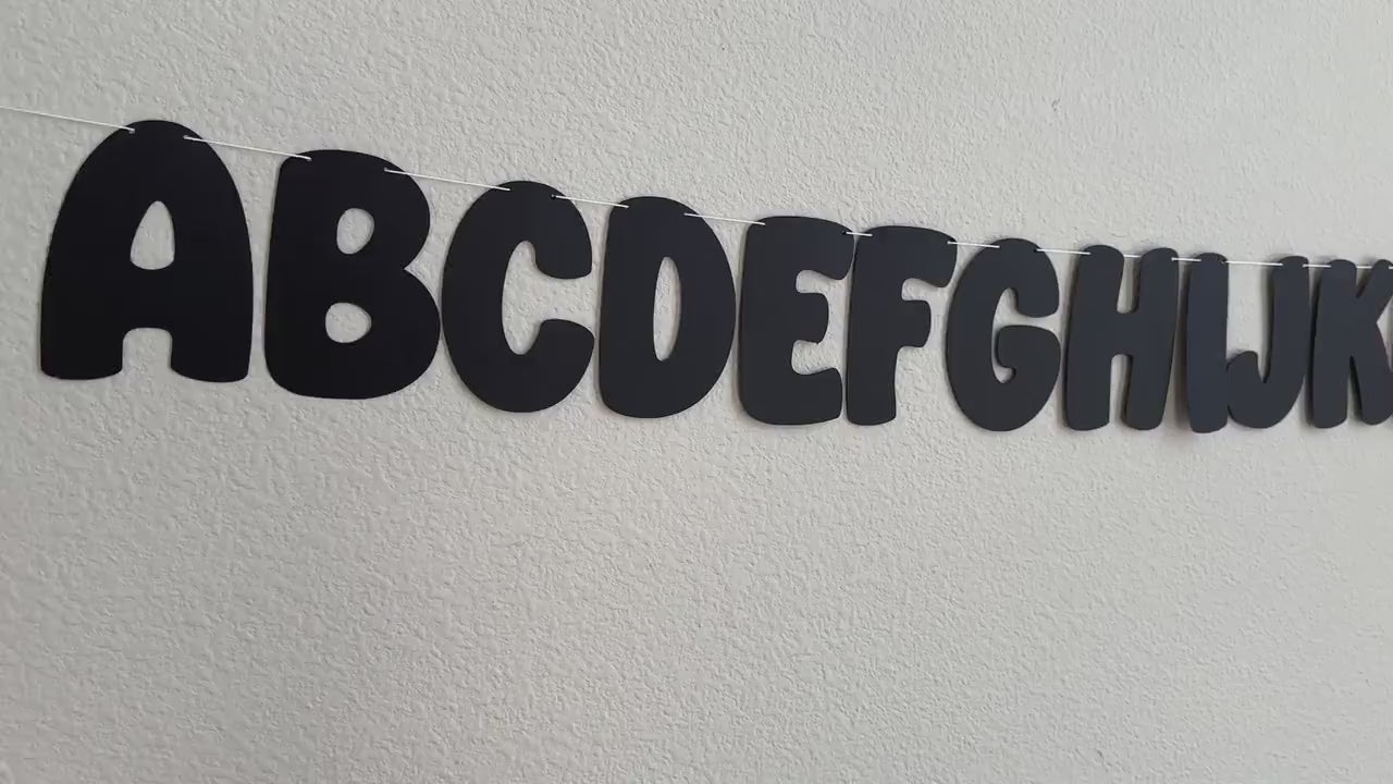 > The letters are not attached to the string so they can slide to adjust the size/look of the banner.